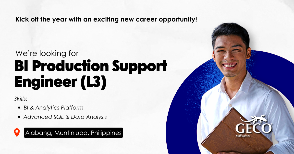 GECO Philippines is looking for a BI Production Support Engineer (L3) to support and maintain enterprise Business Intelligence and analytics platforms. This role focuses on advanced production support, data analysis, and ensuring the reliability and performance of BI systems in a mission‑critical environment.